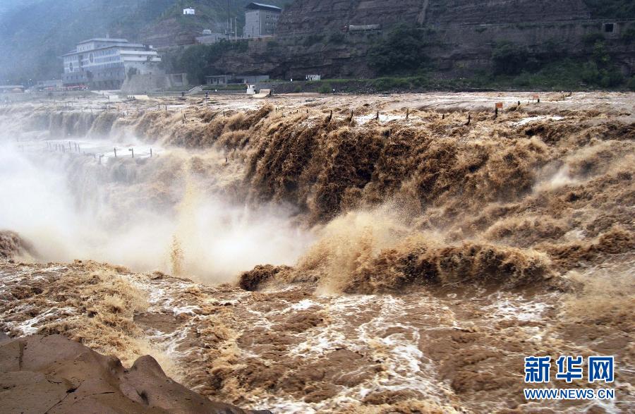 受上游降雨和水庫(kù)調(diào)節(jié)放水影響,黃河干流迎來(lái)秋汛,壺口瀑布水量大增,主副瀑布連成一線,氣勢(shì)極為壯觀。 新華社發(fā)(呂桂明 攝)