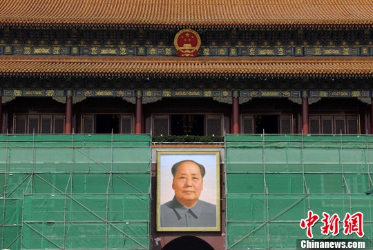 9月4日,北京天安門城樓搭起腳手架和防護(hù)網(wǎng),正在接受墻體粉刷和維護(hù)。為迎接"十一"國慶節(jié)的到來,城樓外墻、兩塊標(biāo)語牌、燈飾等都要進(jìn)行檢修和測試。中新社發(fā) 侯宇 攝