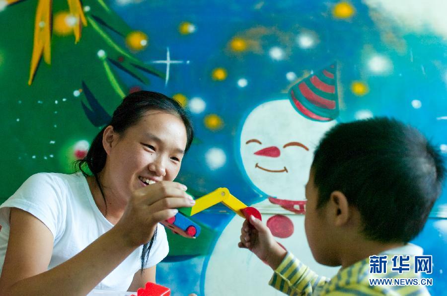 9月9日,謝玉琴老師在對學生進行認知課程輔導。當?shù)?7個教師節(jié)來臨之際,在北京的一所名為“星星雨”的特殊學校里,一群默默奉獻的教師,教育著一群特殊的學生,他們用自己的愛心與付出迎接自己的節(jié)日。星星雨教育研究所是我國第一家為自閉癥兒童及其家庭提供服務的民辦教育機構(gòu)。隨著“星星雨”被媒體廣泛關(guān)注,人們也開始越來越關(guān)注自閉癥兒童這個特殊的群體。新華社記者 白禹 攝