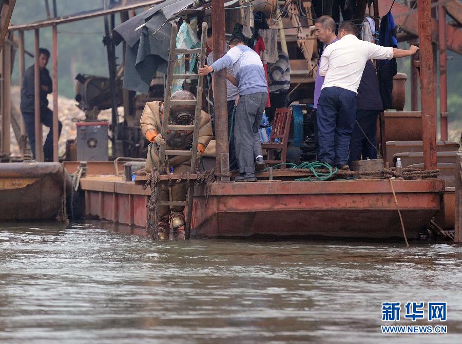 湖南省海事局的一位干部10日下午在現(xiàn)場勘探后,指著出事的水面告訴記者,河道被挖沙船挖得千瘡百孔,這對渡船航行造成危險。記者在現(xiàn)場看到,在這片不大的水域里有七八臺挖沙船在作業(yè)。河道里面因為挖沙被翻出的鵝卵石堆在一起,星羅棋布地分布在水面上。被一堆堆鵝卵石擠窄的河道里水流明顯湍急了很多。