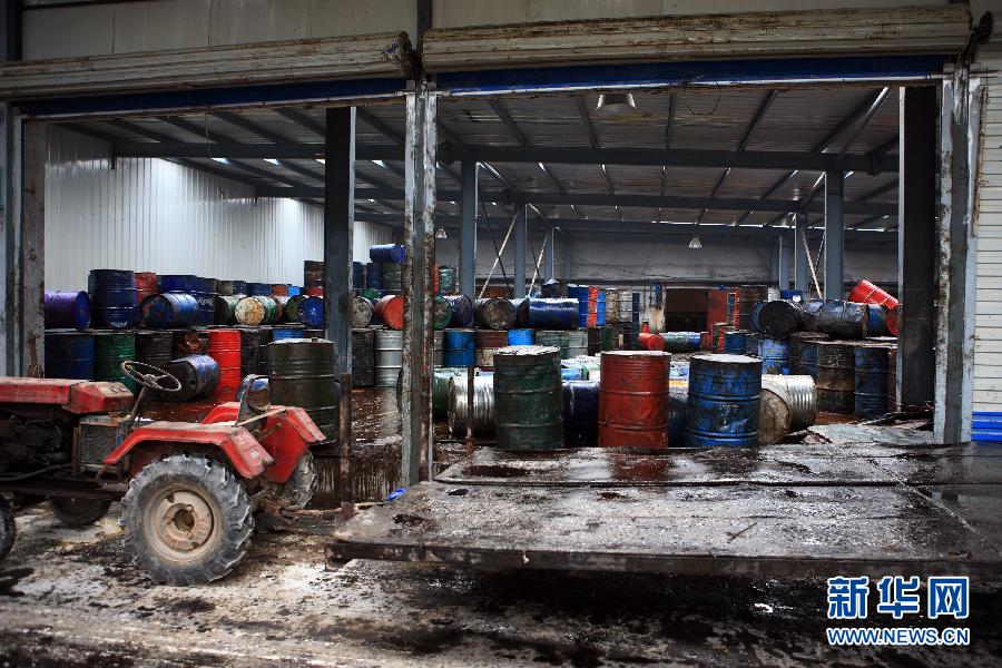 被查獲存在非法使用地溝油制售食用油的濟(jì)南格林生物能源有限公司的車間(7月4日攝)。近日,公安部指揮浙江、山東、河南公安機(jī)關(guān)破獲一團(tuán)伙生產(chǎn)銷售食用地溝油案件,一條集掏撈、粗煉、倒賣、深加工、批發(fā)、零售等六大環(huán)節(jié)的地溝油黑色產(chǎn)業(yè)鏈浮出水面! (jù)了解,這也是公安機(jī)關(guān)首次全環(huán)節(jié)破獲以地溝油為原料制售食用油的重大案件,這起案件也暴露了我國在地溝油監(jiān)管機(jī)制方面存在的一些問題。新華社發(fā)