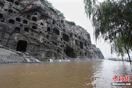 9月15日,位于洛陽(yáng)龍門石窟盧舍那大佛河對(duì)面的禮佛臺(tái)已經(jīng)過(guò)水。中新社發(fā) 張曉理 攝 圖片來(lái)源:CNSPHOTO