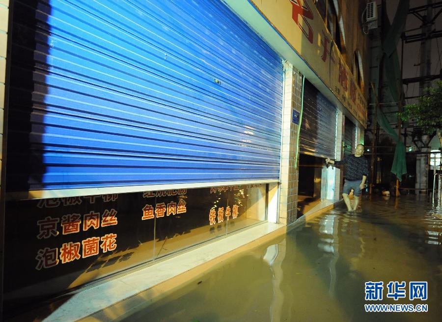 新華社照片 重慶 2011年9月19日 重慶合川區(qū)城區(qū)被洪水襲擊 9月19日,一位市民站在自己被水淹的門面前。當天,受嘉陵江、涪江、渠江上游連降暴雨的影響,重慶市合川區(qū)沿江街道被洪水襲擊,據水文部門預報,嘉陵江東津沱水文站將于9月20日8時迎來洪峰水位213m,超保證水位6.07米。截至9月19日11時,嘉陵江東津沱水位206.15米。目前水位仍在繼續(xù)上漲,已有8.3萬群眾被轉移,目前暫無人員傷亡。新華社記者 周衡義 攝