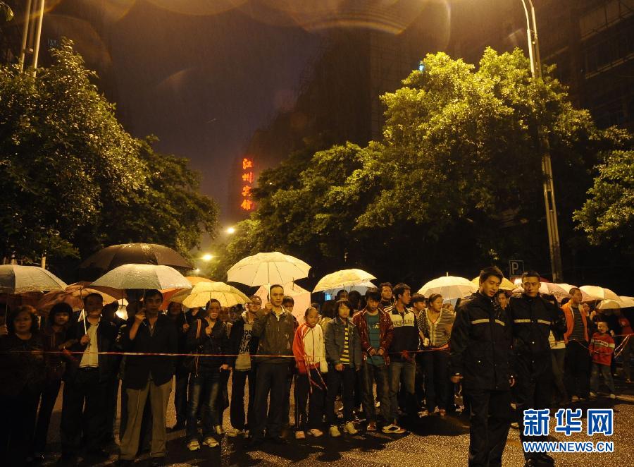 新華社照片 重慶 2011年9月19日 重慶合川區(qū)城區(qū)被洪水襲擊 9月19日,入夜時分不少市民在觀看上漲的江水。當天,受嘉陵江、涪江、渠江上游連降暴雨的影響,重慶市合川區(qū)沿江街道被洪水襲擊,據水文部門預報,嘉陵江東津沱水文站將于9月20日8時迎來洪峰水位213m,超保證水位6.07米。截至9月19日11時,嘉陵江東津沱水位206.15米。目前水位仍在繼續(xù)上漲,已有8.3萬群眾被轉移,目前暫無人員傷亡。新華社記者 周衡義 攝