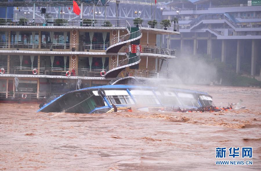 9月20日,餐飲船由于失去動力,不到2分鐘已經(jīng)翻轉(zhuǎn)近180度。 9月20日16時許,受過境洪峰影響,嘉陵江重慶主城渝澳大橋水域一餐飲船舶翻沉,船上11人落水。重慶海事、消防等部門組織力量全力施救,目前已有9人被救起(1人自救上岸),余下2人正在進(jìn)一步搜救中。新華社發(fā)