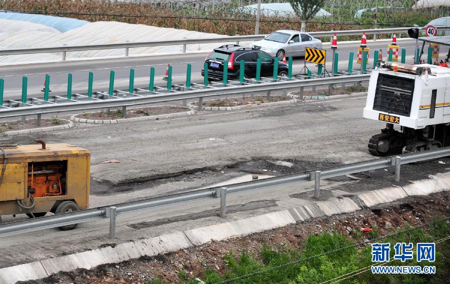 9月21日,在天定高速天水市境內(nèi),兩輛汽車在同一側(cè)道路上相向行駛,高速公路的另一側(cè)路面在進行修理施工。