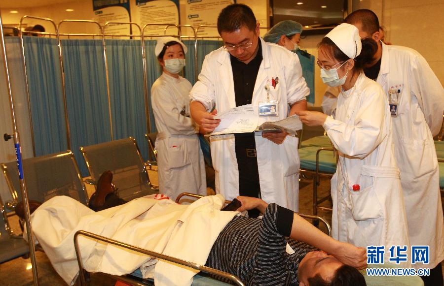 9月27日,上海瑞金醫(yī)院的醫(yī)護人員查看傷員的傷勢。