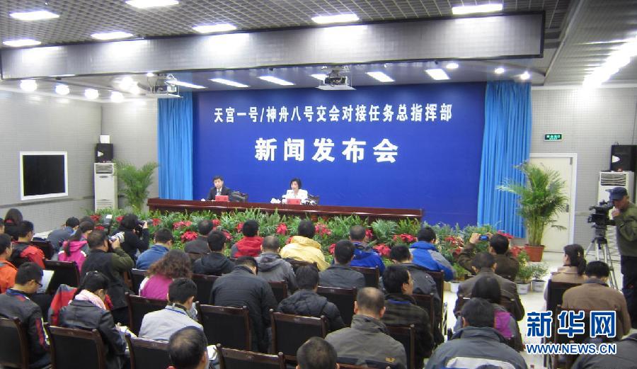 10月31日,天宮一號(hào)/神舟八號(hào)交會(huì)對(duì)接任務(wù)總指揮部舉行新聞發(fā)布會(huì),新聞發(fā)言人武平向中外媒體記者介紹任務(wù)有關(guān)情況。 新華社記者 李剛攝