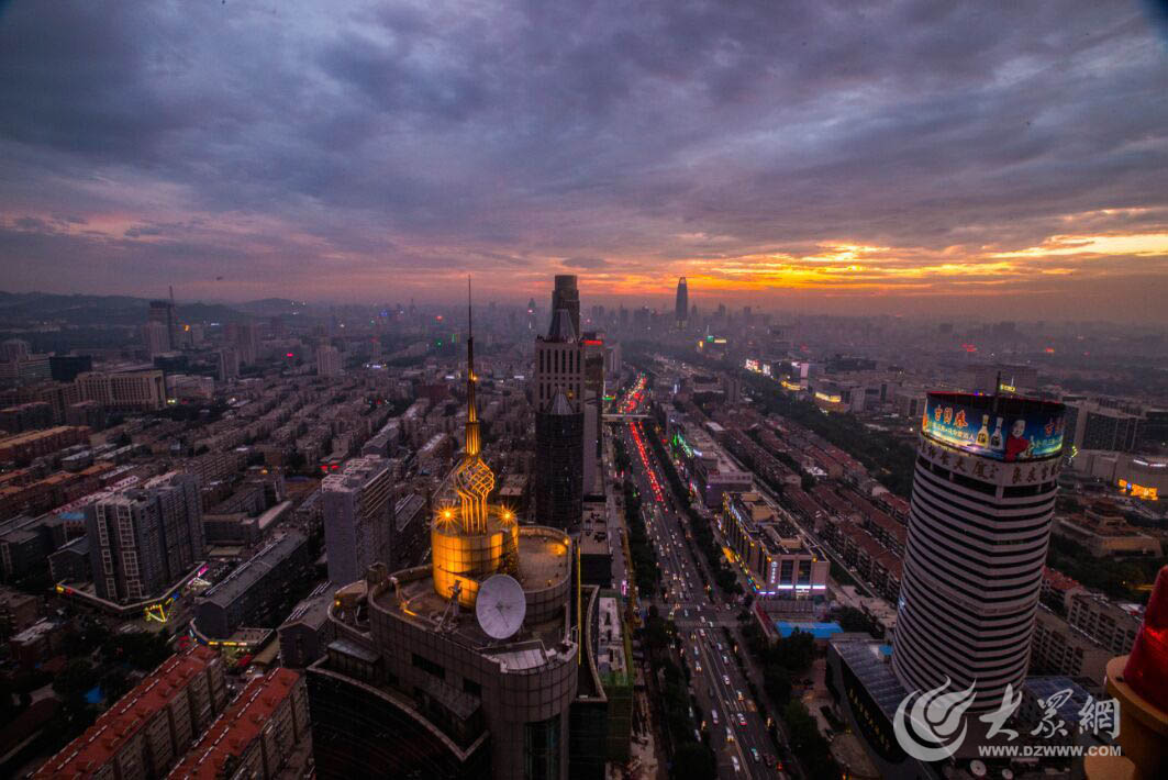 雨歇晚霞明,風(fēng)調(diào)夜景清。經(jīng)過了下午短暫的小雨,傍晚時(shí)分,泉城西邊天空出現(xiàn)層層云朵,在夕陽的照射下透出耀眼的金黃色,而市區(qū)東邊天空則陰云密布,有著暴雨欲來之勢。此等美景,看著看著就醉了。