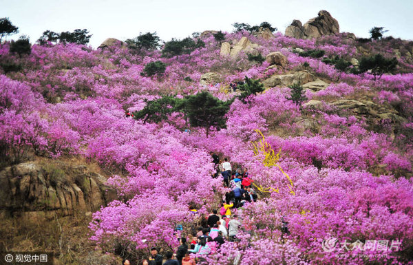 青島:春來飛紅大珠山 萬畝花海惹人醉