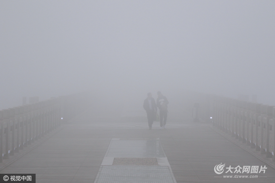 2017年4月7日,山東省煙臺(tái)市出現(xiàn)平流霧,島嶼、建筑、街道在霧中若隱若現(xiàn),宛若仙境。