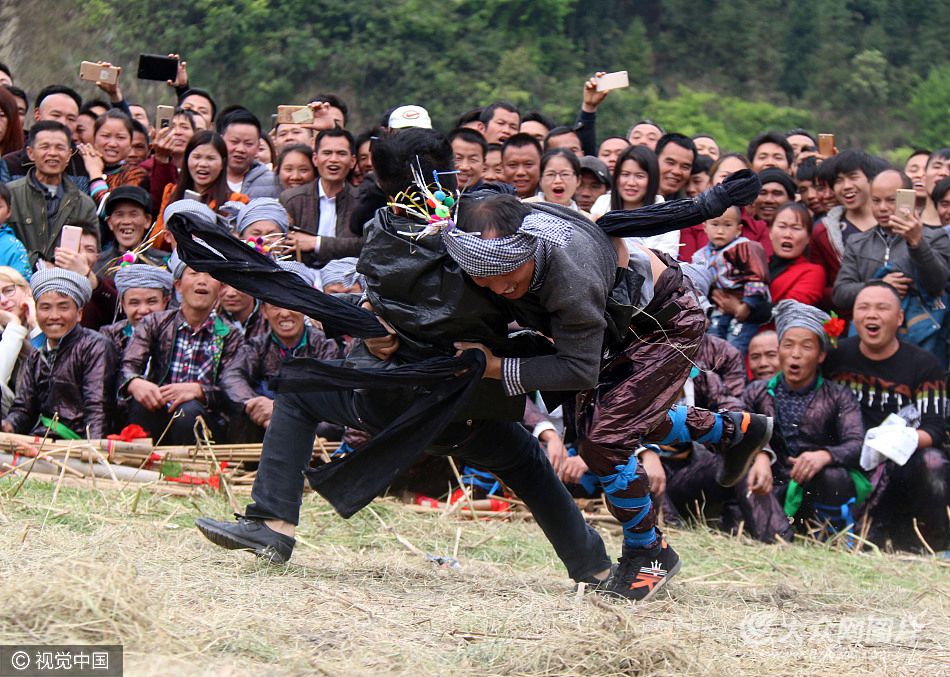 4月11日,貴州省黔東南苗族侗族自治州黎平縣雙江鎮(zhèn)四寨村舉行一年一度的侗族傳統(tǒng)摔跤節(jié),當(dāng)?shù)囟弊逋碇?jié)日盛裝,開展寨門迎賓、祭祀、游行、摔跤比拼等民俗活動(dòng),歡度傳統(tǒng)佳節(jié),祈福國(guó)泰民安、村寨和諧。