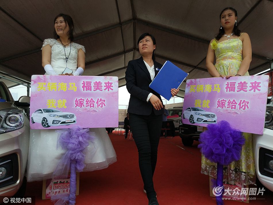 2017年4月16日,在濱州的一場車展上,車模身穿禮服,打出耀眼招牌,“買車我就嫁給你”,并現(xiàn)場手舉征婚啟事“公開征婚”。但這其實(shí)是汽車商家的一種吸睛策略。而正是這一招,吸引了眾多市民前來圍觀,讓這家車商人氣爆棚。