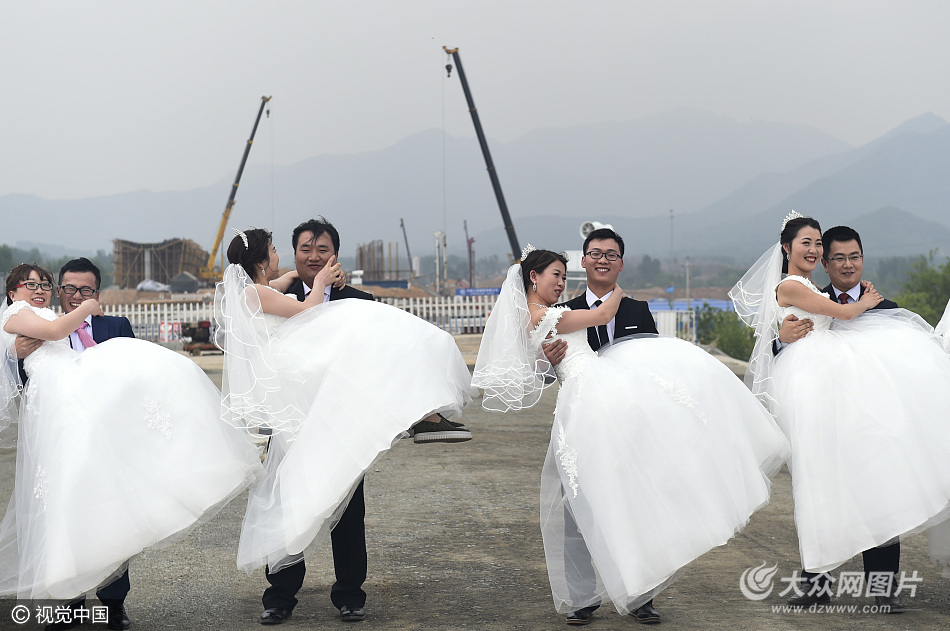 2017年4月24日,山東鄒平,五一勞動(dòng)節(jié)前夕,正在建設(shè)中的濟(jì)青高鐵中鐵三局項(xiàng)目部鄒平縣建設(shè)工地的16對(duì)新人穿上婚紗、工裝在自己的施工現(xiàn)場(chǎng)拍攝結(jié)婚照,并栽下象征永久幸福的合歡樹(shù),作為美好的青春記憶,拍攝的照片將在各建設(shè)工地進(jìn)行展示,以激發(fā)建設(shè)工人的干勁和熱情。