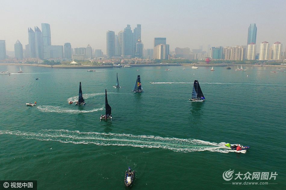 2017年4月29日,五一小長(zhǎng)假首日,在山東省青島市奧帆中心海域2017國(guó)際極限帆船內(nèi)港賽上演揚(yáng)帆競(jìng)速好戲,浮山灣畔帆影如林,大秀帆船之都美景,吸引了眾多攝影愛好者和游客圍觀。