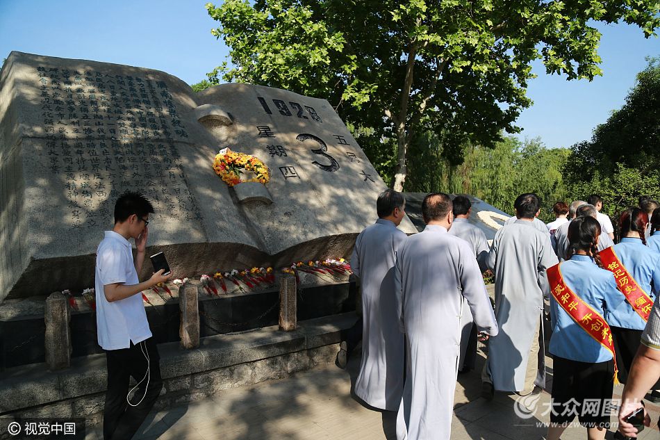 為紀(jì)念“五三慘案”89周年,警示民眾勿忘國恥、居安思危,5月3日上午10時(shí),濟(jì)南市將組織第19次防空防災(zāi)警報(bào)試鳴,同步組織全市大中小學(xué)進(jìn)行防空防災(zāi)應(yīng)急疏散演練。圖為濟(jì)南社會各界人士在“五三慘案”紀(jì)念碑前悼念遇難同胞。
