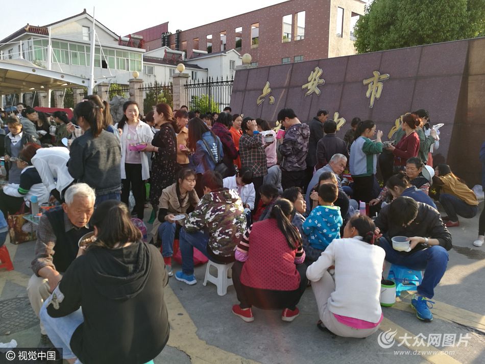 近日,安徽省六安市毛坦廠中學(xué),學(xué)生們?cè)谛iT口吃晚飯。