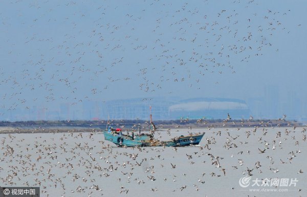 青島大潮日數(shù)萬候鳥奔赴灘涂“餐廳”場面壯觀