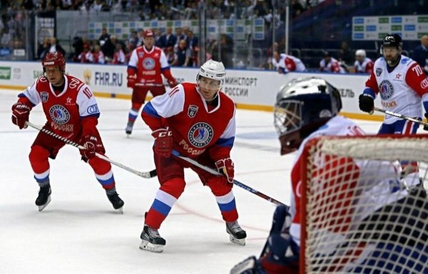 普京打冰球秀運(yùn)動(dòng)天賦