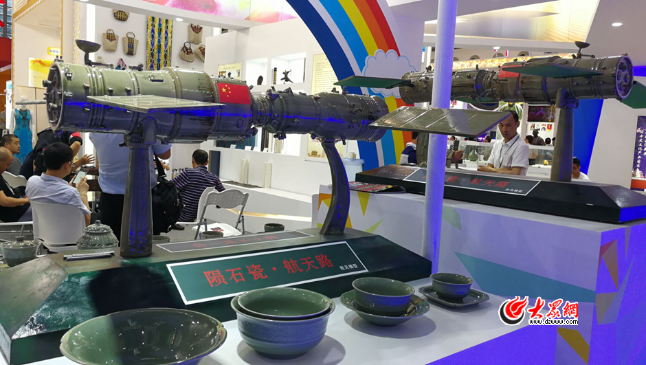 在陜西館,隕石瓷航天路造型展示了文化范的高科技,一套售價(jià)15萬。 大眾網(wǎng)記者 王長坤 攝