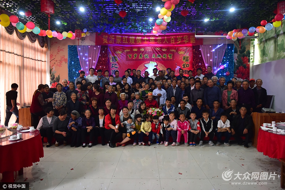 侯士蓮老人1917年出生在蒙陰縣野店鎮(zhèn)桑子峪村,經(jīng)歷了民國(guó)、抗日戰(zhàn)爭(zhēng)、解放戰(zhàn)爭(zhēng)、土地改革等歷史時(shí)期。年輕的時(shí)候,老人思想先進(jìn),積極參加支前活動(dòng),曾經(jīng)多次組織并參與做軍鞋、送軍糧,掩護(hù)八路軍傷員等支前行動(dòng)。由于前段時(shí)間老人生了一場(chǎng)病,聽力急劇下降,外孫專門給老人買了一個(gè)助聽器。為給老人祝壽,老人的子孫們專門給侯士蓮定制了一個(gè)長(zhǎng)1.6米的大蛋糕。說(shuō)起家族的長(zhǎng)壽“秘訣”,侯士蓮80歲的大女兒劉和美告訴記者,保持樂觀的心態(tài)很重要。