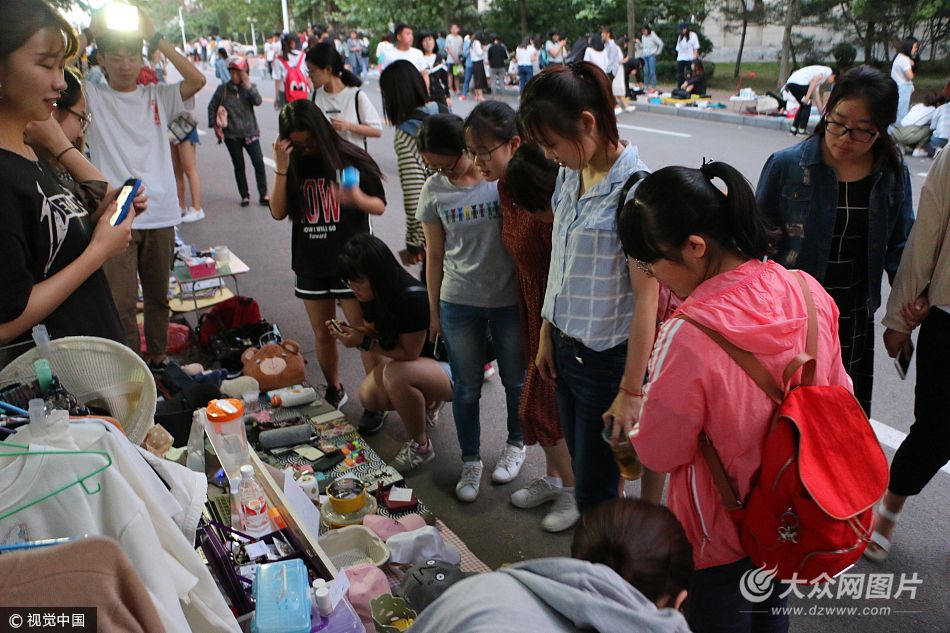 2017年5月15日,畢業(yè)季即將來(lái)臨,山東財(cái)經(jīng)大學(xué)“跳蚤市場(chǎng)”熱鬧開(kāi)市,畢業(yè)生紛紛將自己閑置物品擺放在市場(chǎng)中售賣,商品標(biāo)語(yǔ)千奇百怪,成為跳蚤市場(chǎng)一獨(dú)特風(fēng)景。