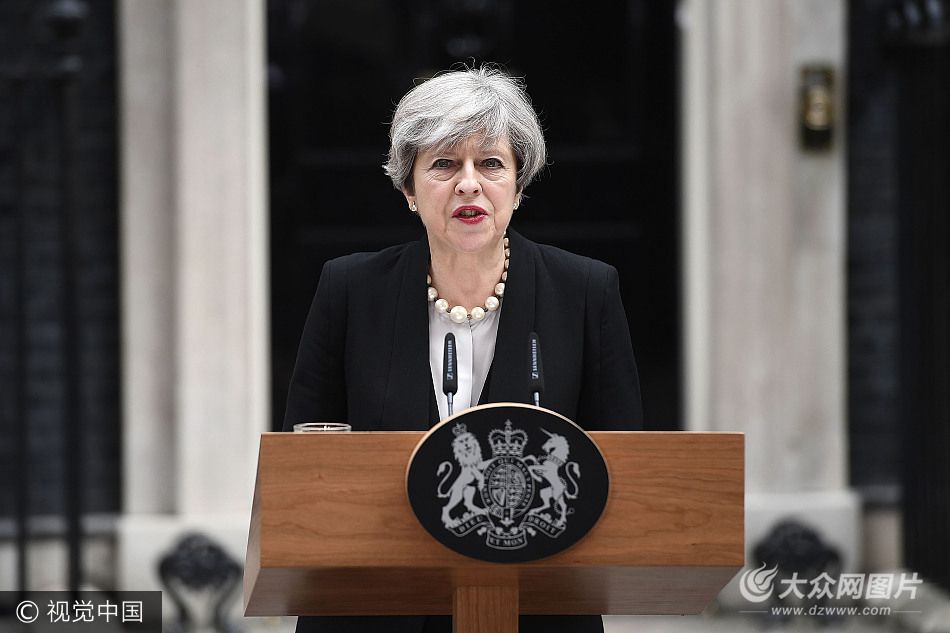 當(dāng)?shù)貢r(shí)間2017年5月23日,英國(guó)倫敦,英國(guó)首相特蕾莎·梅在唐寧街就曼徹斯特爆炸案發(fā)表聲明。她說,發(fā)生在22日晚間的曼徹斯特體育場(chǎng)爆炸是針對(duì)毫無防御能力的年輕人的“無情恐怖襲擊”。她還表示,警方已經(jīng)知道這一單人作案人員的身份,但目前還不是對(duì)外公布的時(shí)候。英國(guó)警方此前確認(rèn),曼徹斯特體育場(chǎng)發(fā)生爆炸,導(dǎo)致至少22人死亡、59人受傷。
