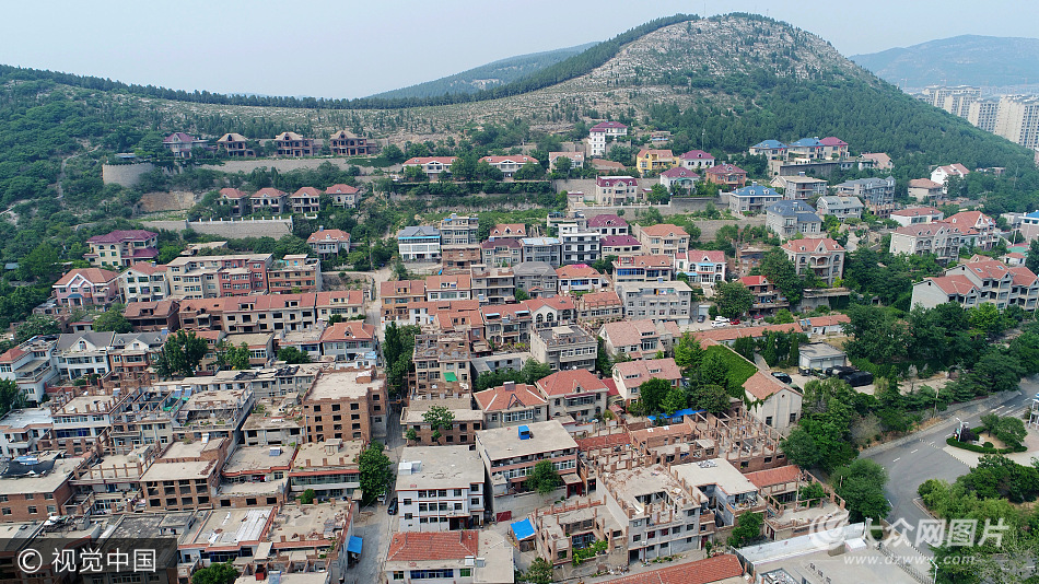2017年5月22日,山東省濟(jì)南市,旅游路西段的金雞嶺別墅群,從百米高空俯瞰,別墅區(qū)從千佛山南路開始,沿著山體一直向西延伸至歷陽湖,別墅依山而建,最高的別墅距離山頂不足百米。