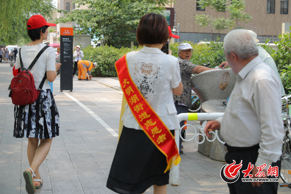 6月2日,在大明湖路上的一處泉水直飲點(diǎn),志愿者勸說(shuō)打水者不要長(zhǎng)時(shí)間占用直飲點(diǎn),接水者嘴上答應(yīng)著,確不肯離開(kāi)。大眾網(wǎng)記者 王長(zhǎng)坤 攝