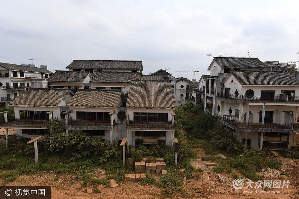 2017年5月29日,沿著南寧市青環(huán)路東南亞美食城旁一條小路進(jìn)去,在邕江邊上有20余棟爛尾多年的別墅群,雜草叢生沒(méi)人住。按照現(xiàn)在的市場(chǎng)價(jià)格,每棟爛尾別墅市值超過(guò)千萬(wàn)元。供圖:視覺(jué)中國(guó)