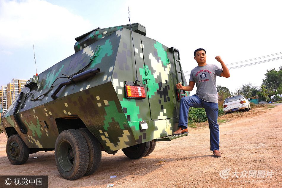 “我造的這輛‘裝甲車’上過網(wǎng)絡(luò)新聞?lì)^條,拍過微電影,上過景區(qū),還參加過真人CS射擊游戲活動(dòng),可以說是名副其實(shí)的‘網(wǎng)紅’車!2017年6月11日,在山東省日照市經(jīng)濟(jì)技術(shù)開區(qū)北京路街道前崮子村,時(shí)延強(qiáng)高興的告訴筆者。