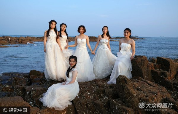 青島女大學(xué)生身著婚紗拍攝畢業(yè)紀(jì)念照