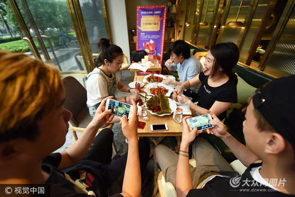2017年6月21日,顧客在杭州一家小龍蝦餐廳里掃碼抽獎(jiǎng),希望得到免費(fèi)的代練“王者榮耀”的機(jī)會(huì)。