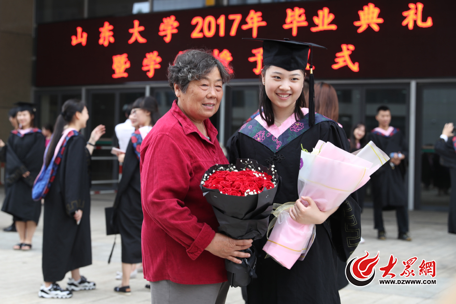 6月23日,山東大學(xué)舉行2017屆本科生畢業(yè)典禮暨學(xué)位授予儀式,6000名應(yīng)屆畢業(yè)生身穿學(xué)士服、學(xué)士帽迎接自己人生的新階段。值得一提的是,有很多畢業(yè)生的家長(zhǎng)不遠(yuǎn)千里從全國(guó)各地來(lái)到畢業(yè)典禮現(xiàn)場(chǎng),與他們的孩子一起見證畢業(yè)的歡慶時(shí)刻。圖為一名畢業(yè)生的姥姥從安徽坐火車來(lái)到濟(jì)南,參加孩子的畢業(yè)典禮。大眾網(wǎng)記者 王長(zhǎng)坤 攝