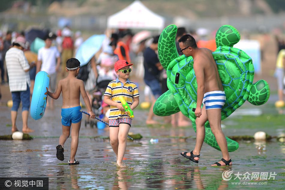 山東聊城、濱州、東阿等多地發(fā)布黃色高溫預(yù)警,氣溫躥升至35℃以上。受各地高溫天氣影響,青島市“避暑”游客明顯增加,海水浴場吸引了眾多游客前來戲水享清涼。