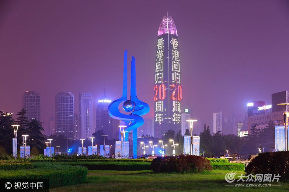 濟(jì)南第一高亮燈祝福建黨96周年和香港回歸20周年