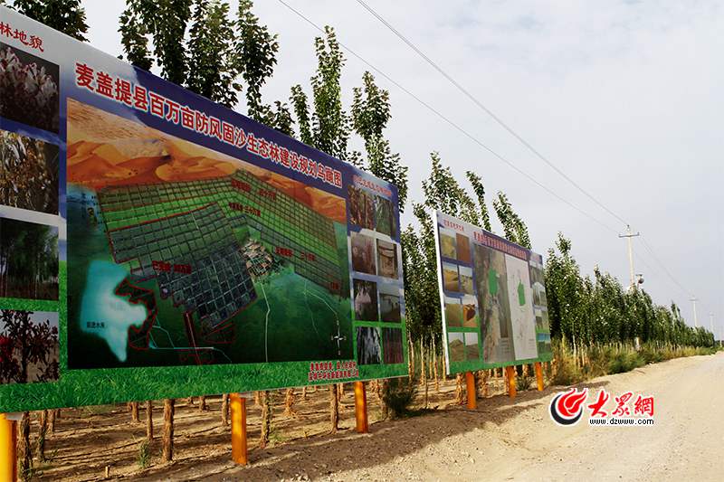 麥蓋提縣三面環(huán)沙,全縣大約90%的面積都是沙漠,這里年均約有80余天沙塵天氣。不過,麥蓋提當?shù)氐母刹扛嬖V記者,借助于當?shù)刎斦度牒蜕綎|援疆干部帶來的資金,麥蓋提正在修建百萬畝防風固沙生態(tài)林,這幾年沙塵天氣越來越少,降雨的頻率越來越高,雨季也變得越來越長。