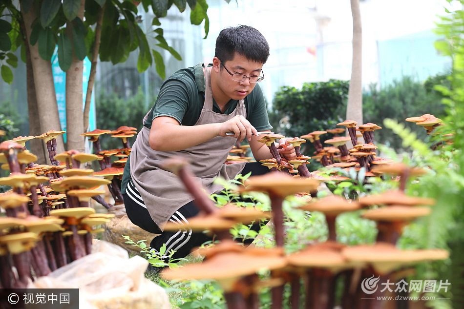 盛夏時節(jié),在山東即墨市大信鎮(zhèn)華盛綠能創(chuàng)客基地,90后大學生創(chuàng)客鹿秀棟培育的“盆景靈芝”迎來采收和制作旺季。