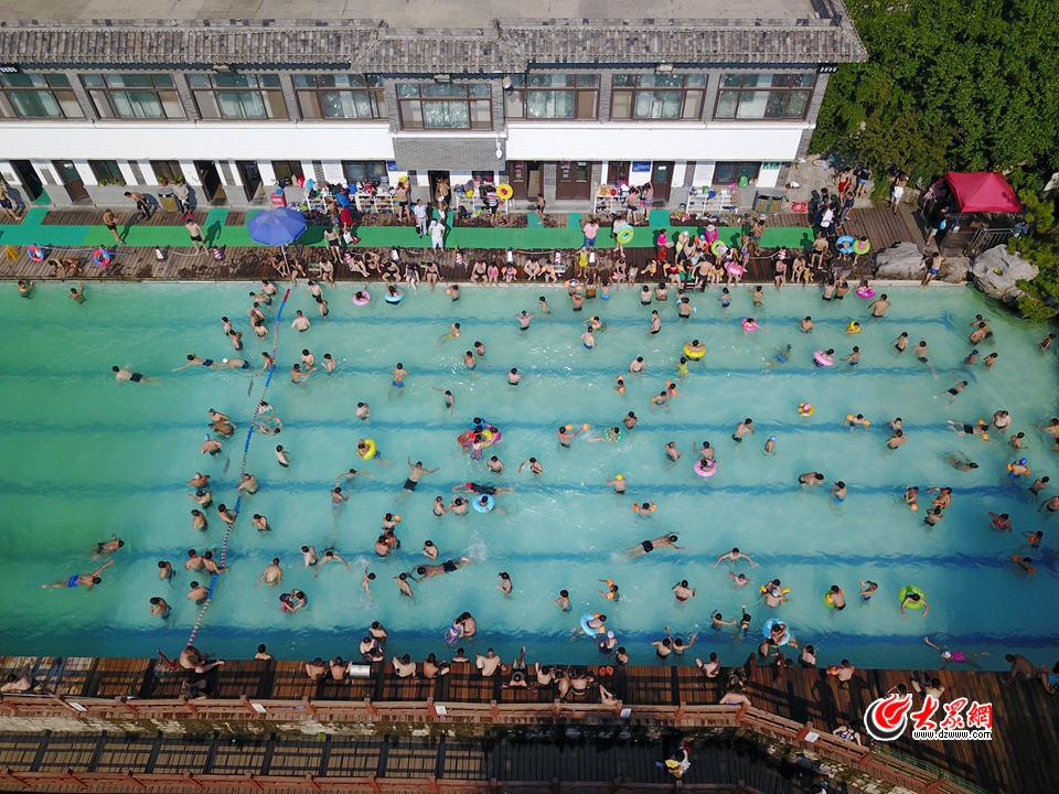 大眾網(wǎng)濟(jì)南7月13日訊 13日,濟(jì)南持續(xù)高溫,位于黑虎泉附近的濟(jì)南泉水浴場聚集了大量來此游泳的市民和游客。從高空俯瞰,游泳池里全是人。(大眾網(wǎng)-山東24小時(shí)客戶端記者 王長坤)