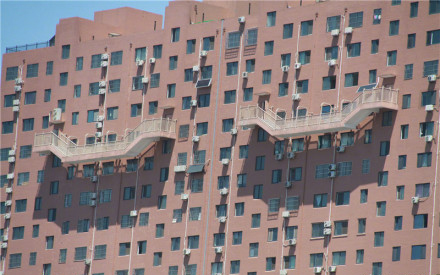 大眾網(wǎng)濟(jì)南7月13日訊 近日,在濟(jì)南的北園大街的白鶴花苑小區(qū)6號(hào)樓,4個(gè)懸在空中的樓梯,引起網(wǎng)友注意。今天上午,記者去體驗(yàn)了這些空中樓梯,站在上面向下看,記者兩腿發(fā)軟,感覺搖搖欲墜。