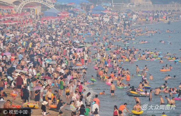 "入伏"進(jìn)入高溫模式 青島數(shù)萬游客"下餃子"避暑