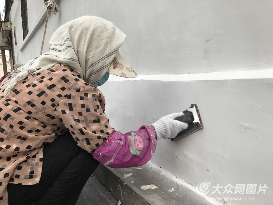 7月25日,在濟南曲水亭街附近的老街巷里,四名來自德州的“粉刷匠”正在戶外作業(yè)。來自德州齊河的50歲大媽劉長珍告訴記者,他們平均年齡在50歲左右,負責芙蓉街老街巷墻面的粉刷工作,他們每人每天工作9個小時,即使在高溫天,也要全副武裝下進行工作。(大眾網(wǎng)-山東24小時客戶端記者 王長坤 攝)