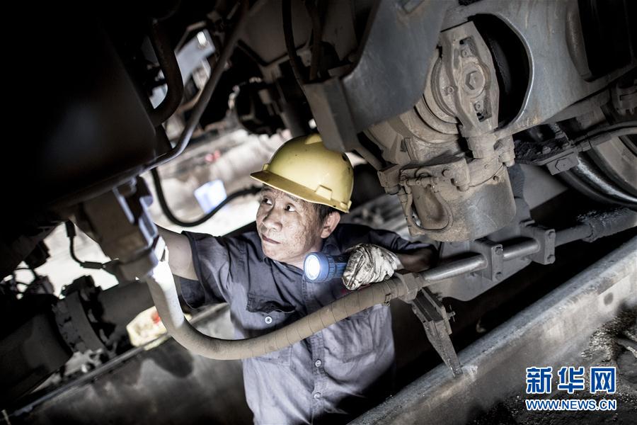7月30日,在武漢武昌客運(yùn)機(jī)車整備場(chǎng)檢修庫房,51歲的電力機(jī)車鉗工吳衛(wèi)兵在機(jī)車底部進(jìn)行檢查維護(hù)。當(dāng)日,武漢武昌客運(yùn)機(jī)車整備場(chǎng)上熱浪滾滾,十多名機(jī)車檢修人員在蒸籠般的庫房?jī)?nèi),對(duì)每臺(tái)機(jī)車的車頂、機(jī)械室和車底進(jìn)行檢查作業(yè)。這是武漢鐵路局武昌南機(jī)務(wù)段武昌整備車間職工工作場(chǎng)景,他們主要負(fù)責(zé)武昌火車站到達(dá)的客運(yùn)機(jī)車入庫后的全方位檢查和保養(yǎng),確保每臺(tái)機(jī)車“健康”上線。入伏以來,武漢地區(qū)持續(xù)高溫,檢修庫房溫度普遍要比室外溫度高出近10℃,又值暑運(yùn),這個(gè)車間的整備任務(wù)非常重。修完一輛,送走一輛,又來一輛,他們剛把身上的汗水晾干,又繼續(xù)下一輛機(jī)車的整備作業(yè)。新華社記者肖藝九攝