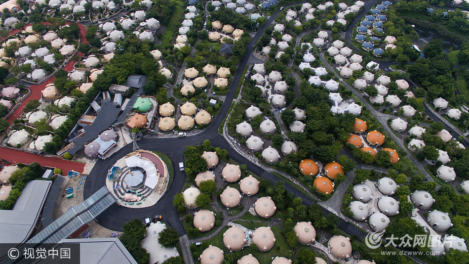 當(dāng)?shù)貢r(shí)間2017年7月31日,日本熊本縣,阿蘇農(nóng)場抗震圓頂屋鳥瞰圖。阿蘇農(nóng)場位于阿蘇國立公園內(nèi),在海拔550米的農(nóng)場占地面積達(dá)到了2000坪,是全世界獨(dú)有的大自然主題公園。而農(nóng)場里最具特色的便是形狀奇異且連綿成群的“饅頭屋”,它們不僅是提供給來到農(nóng)場游客的獨(dú)棟小別墅,也為地震災(zāi)民提供避難所 。