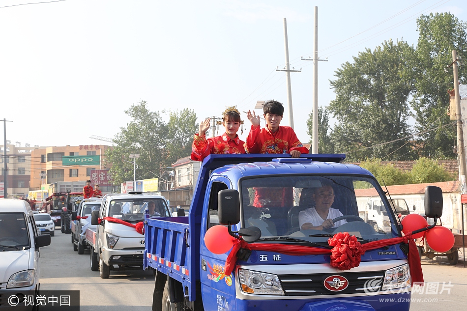 2017年8月13日,山東菏澤!安灰鴮汃R也不要自行車,我想讓你坐著農(nóng)機來接我!”8月13日,一場別開生面的農(nóng)機集體婚禮在鄆城縣侯咽集鎮(zhèn)舉行。5對新人身著中式禮服,登上由拖拉機、三輪車、紅色農(nóng)耕機等組成的婚禮車隊迎親接駕,場面十分震撼。
