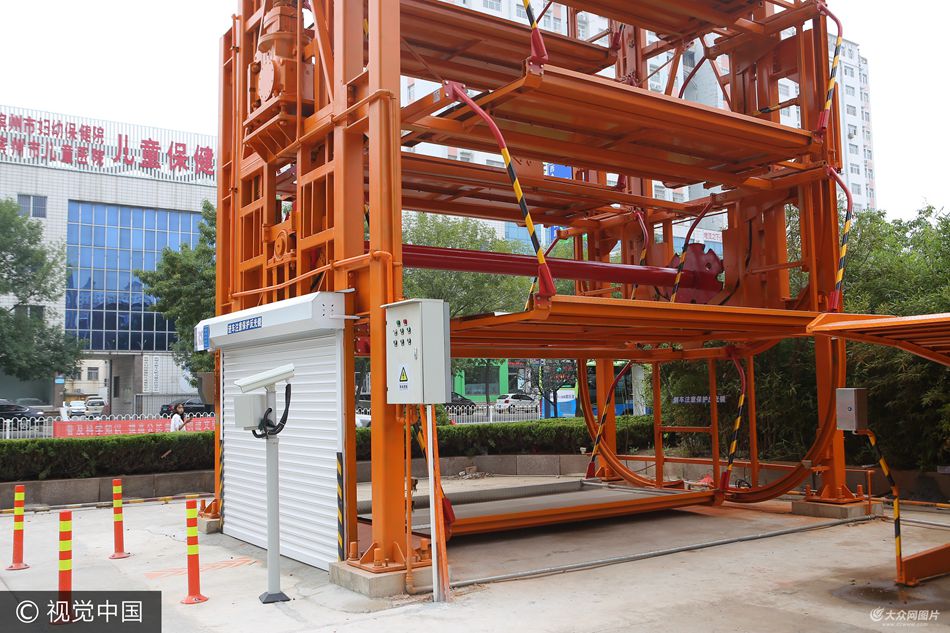 2017年8月18日,山東省濱州市,當(dāng)?shù)厥讉(gè)智能立體停車場(chǎng)安裝試運(yùn)行成功,運(yùn)行時(shí)如同摩天輪,一次可以停放12輛車,在地面上只占用約2個(gè)停車位的空間。市民只需用手機(jī)掃描貼在門口的二維碼即可啟用。