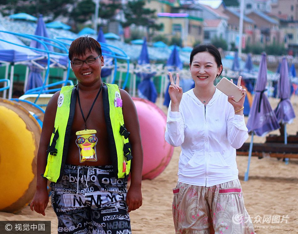 打著遮陽(yáng)傘,涂上防曬霜。炎熱的夏季,我們每次外出都在想方設(shè)法躲避陽(yáng)光避免曬黑。然而,在威海各大海水浴場(chǎng)上,卻有一些人為了謀生不得不整日在烈日下暴曬。8月19日,攝影師沿海邊拍攝了一組他們和游客在一起時(shí)的合影照片。這種強(qiáng)烈的對(duì)比,不僅讓人震撼,更令人心疼。