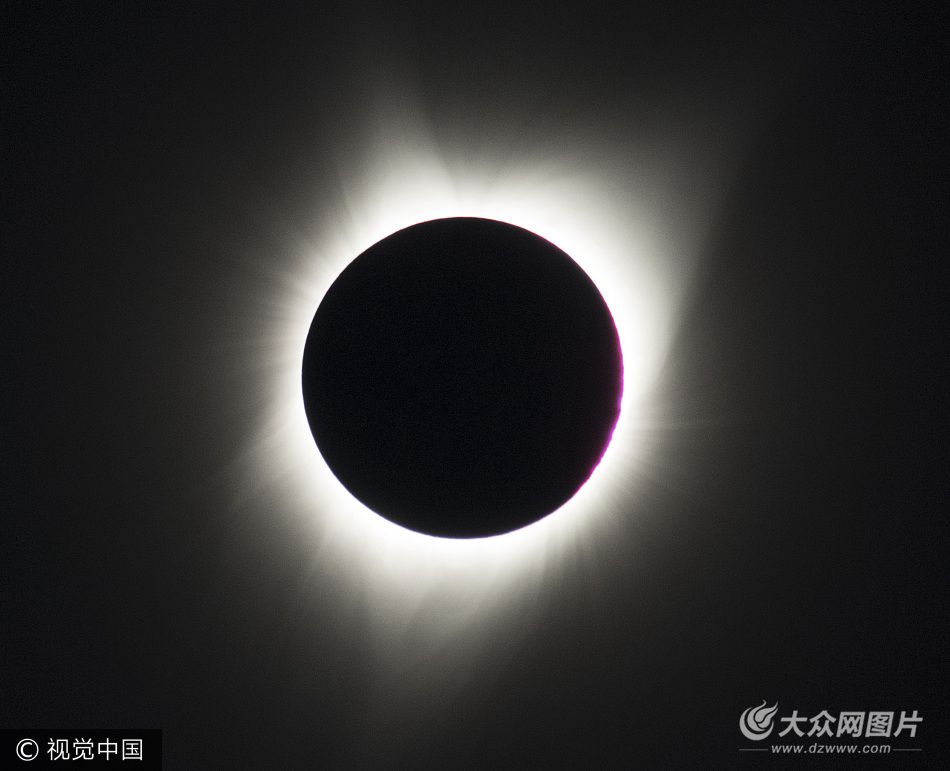 當?shù)貢r間8月21日11時,在美國懷俄明州大提頓國家公園拍攝的日全食景觀。當日,美國迎來罕見日食景觀,此次日食在地球表面形成寬約113公里的日全食帶,自西北向東南貫穿美國本土,美國14個州可觀測到日全食。