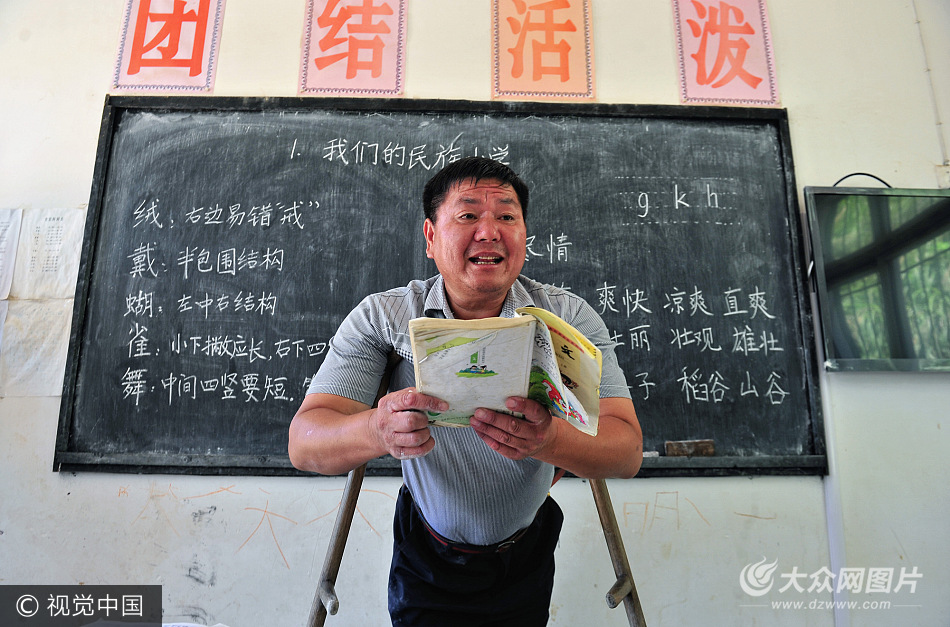 2013年9月3日,安徽安慶,1歲患小兒麻痹癥后拐杖代替了項(xiàng)至祥的雙腿,撐起了他28年的講臺(tái)人生。