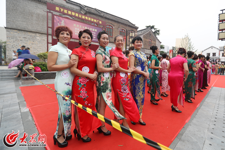 大眾網(wǎng)濟(jì)南9月16日訊 今天下午,濟(jì)南寬厚里舉行了一場(chǎng)旗袍嘉年華,據(jù)了解,共有200名大媽身穿各式各樣的旗袍,在這里走秀、拍照,引來(lái)不少路人圍觀(guān)。(攝影記者 丌祥)